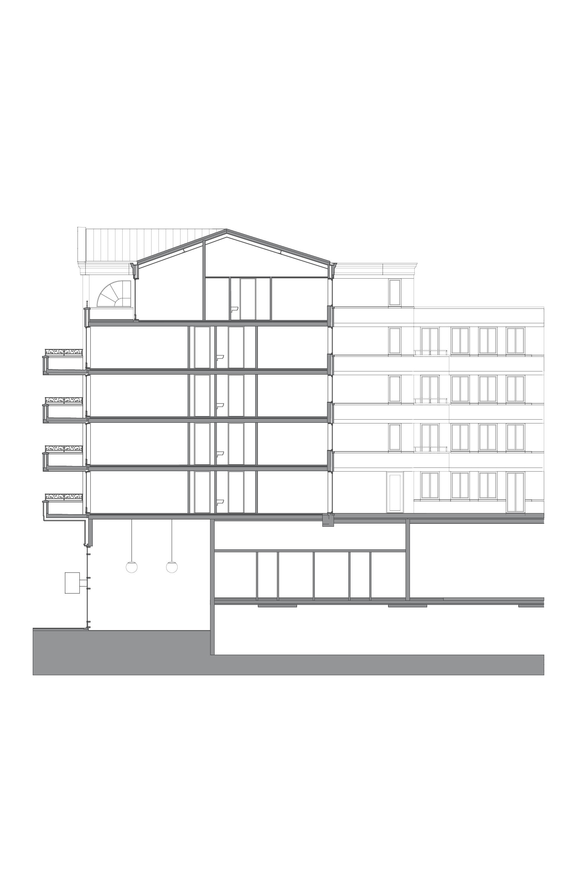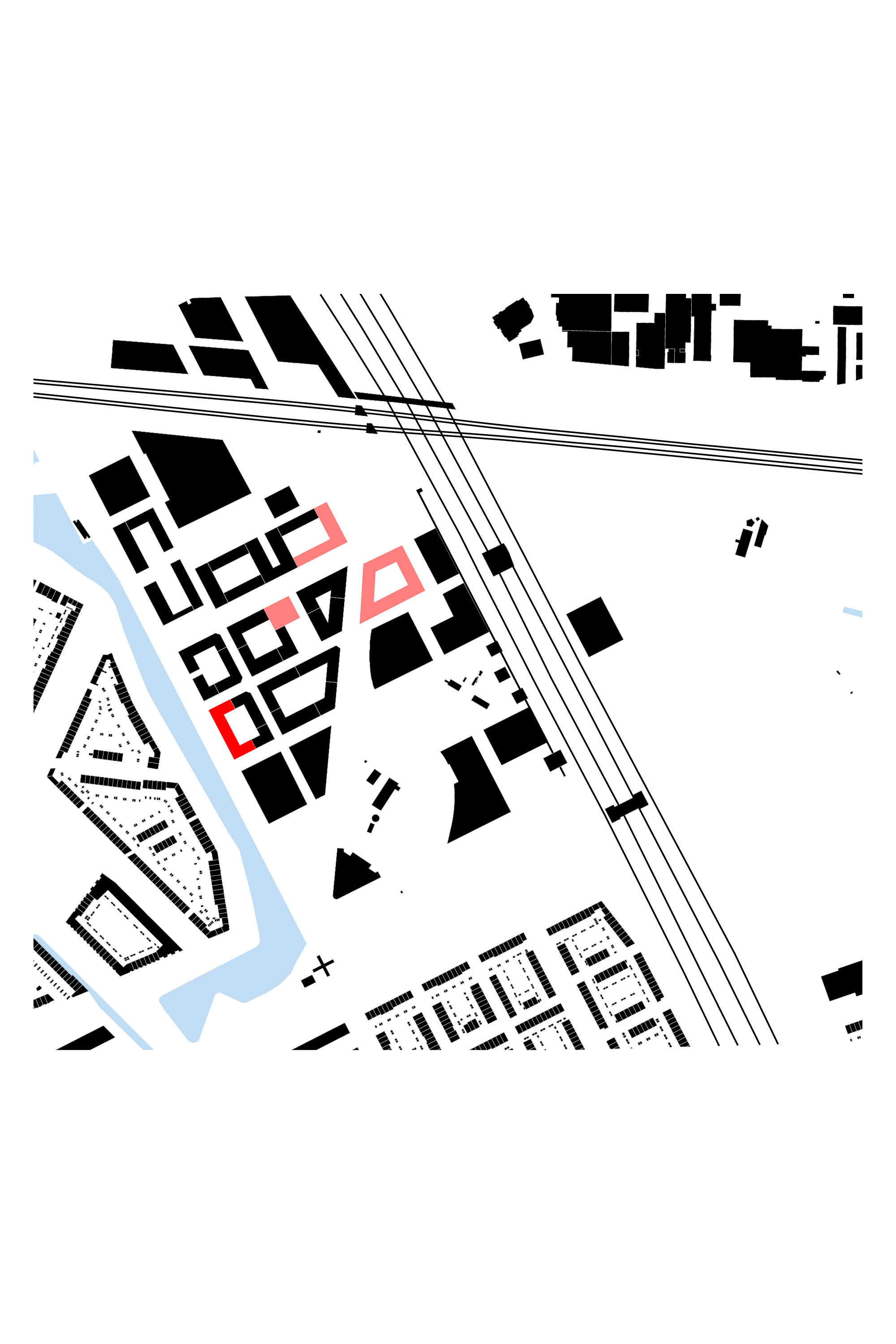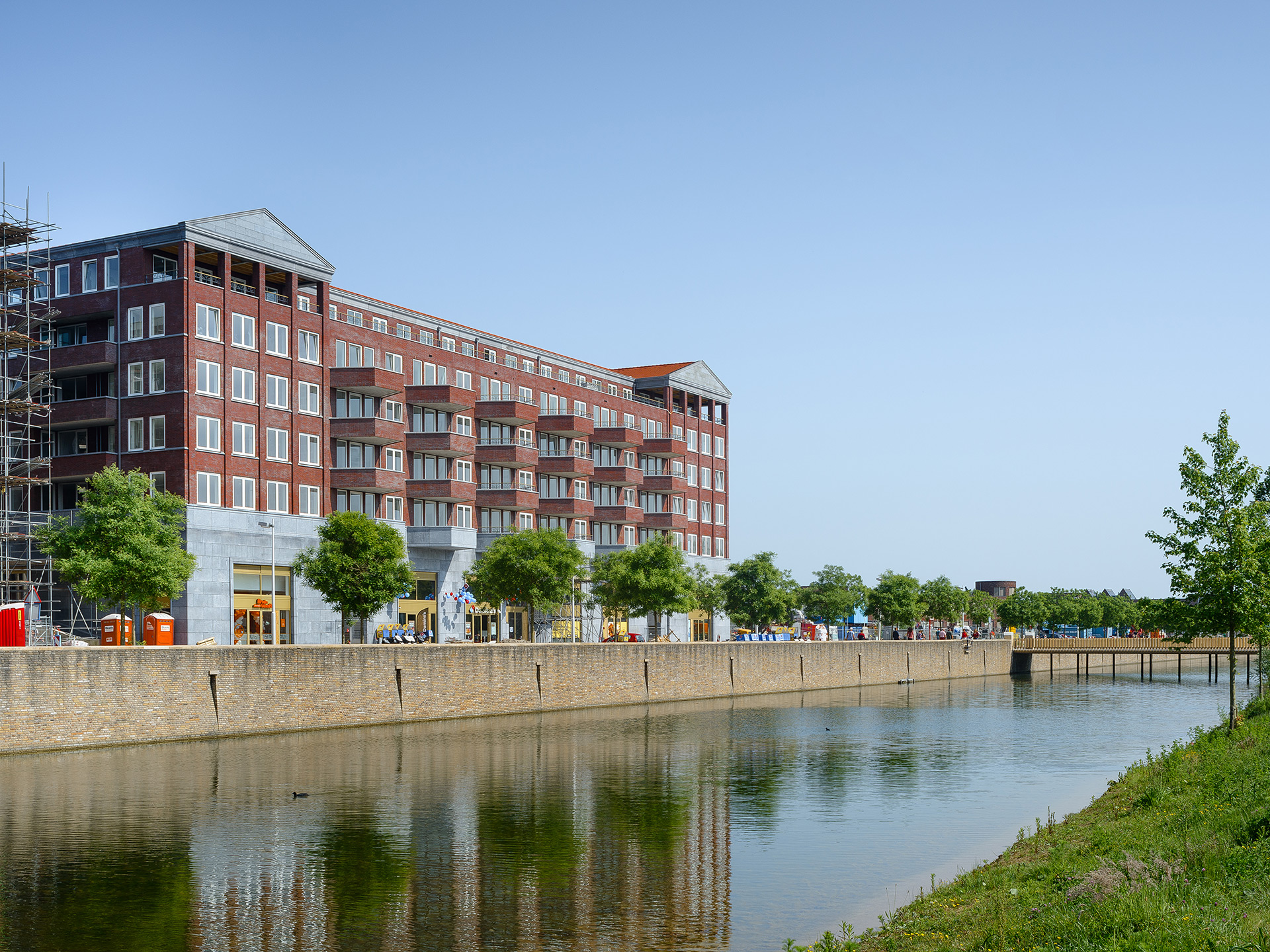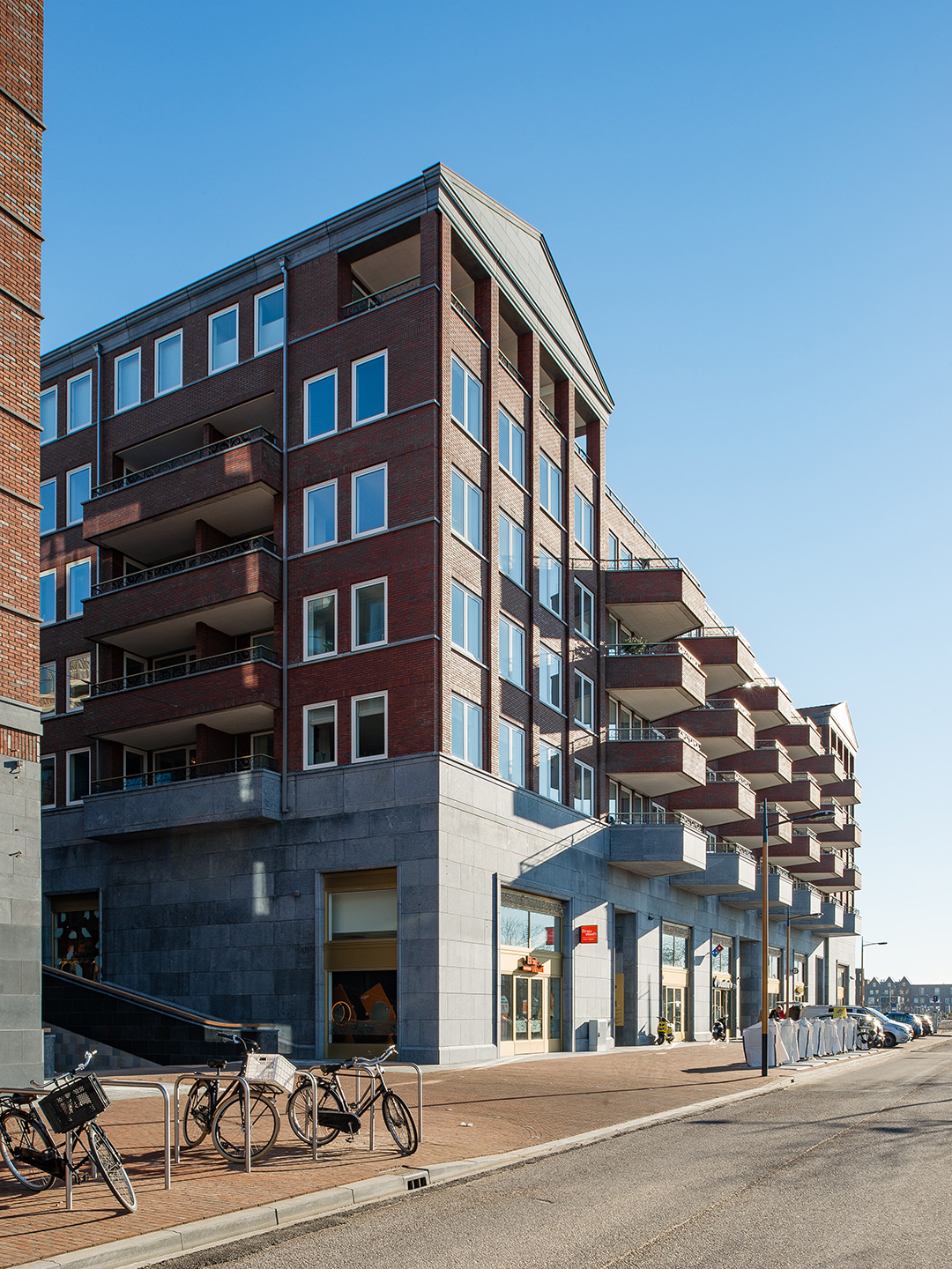 Binnen het totale plan heeft Kollhoff & Pols architecten uiteindelijk zorg gedragen voor het ontwerp van drie panden die diagonaal door het plan zijn gesitueerd. De gebouwen kenmerken zich door een klassieke driedeling in gevelarchitectuur. Bij alle drie de gebouwen herbergt de hoge plint uit Belgisch hardsteen commerciële functies of horeca. Portiekontsluitingen voeren de bewoner naar de bovengelegen appartementen. Verticaal worden de gebouwen allen beëindigd door een zadeldak, dat ze onmiddellijk een vertrouwd karakter geeft.