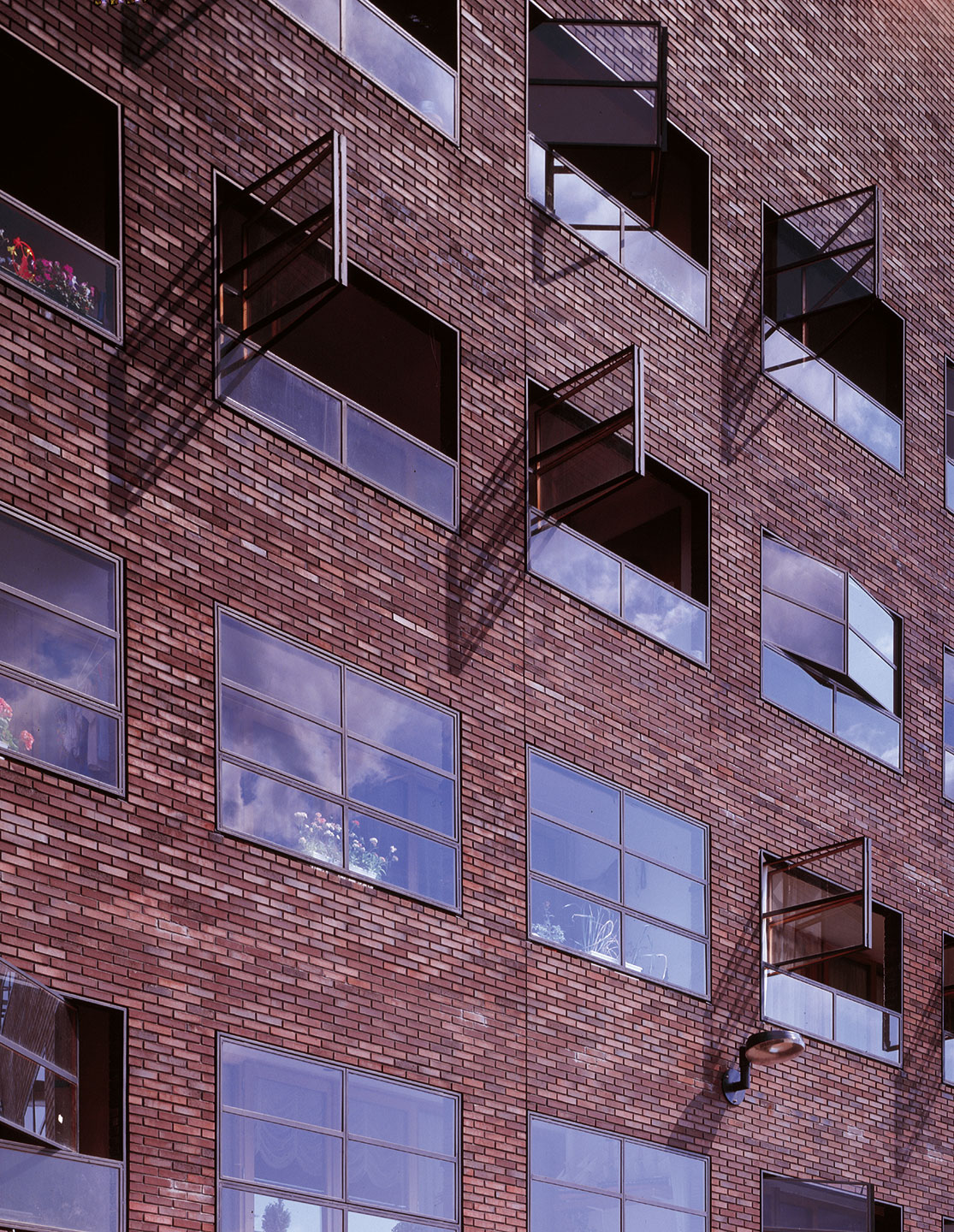 Since its completion, this building has been an example for modern Dutch (social) housing projects. The highly effective use of structure and material has ensured that the building was realized within a modest budget. Nevertheless, the building is accessed through multiple porches that give life to the building and a face at street level. Almost all apartments have winter gardens with windows that open fully. During the development of this building, the future residents were closely involved in the design process. The pioneers who saw salvation in moving from the center of Amsterdam to the old port area were repaid with personal control in the design. This concept was subsequently copied frequently within developing in the Netherlands.