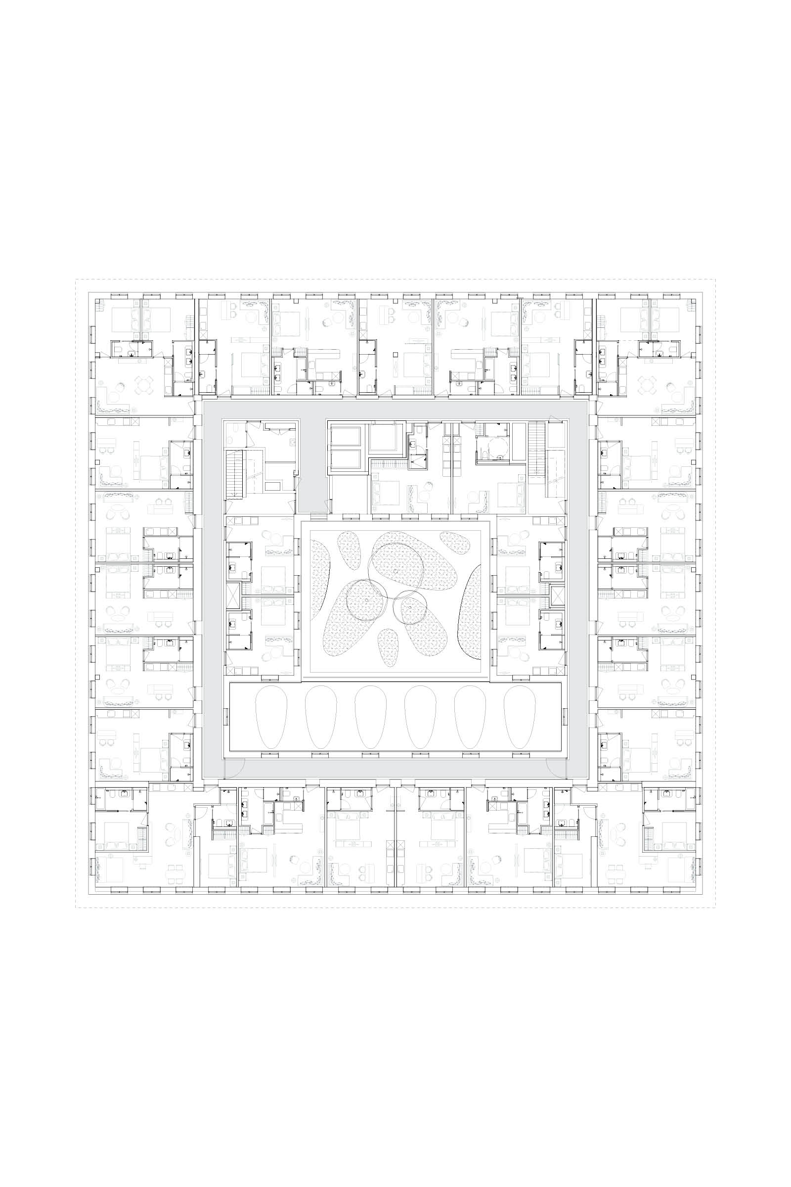 The building contains a visionary hotel concept for long-term stay, ‘’Twenty Eight’’ and a lively hospitality- and educational centre called ‘’het Amsterdamse Proeflokaal’’ (HAP). The program at HAP changes with seasons, trends and demands from its users. It’s a place combing education of the hospitality sector and a public meeting place, a place where knowledge, culinary art and taste development are combined into one.