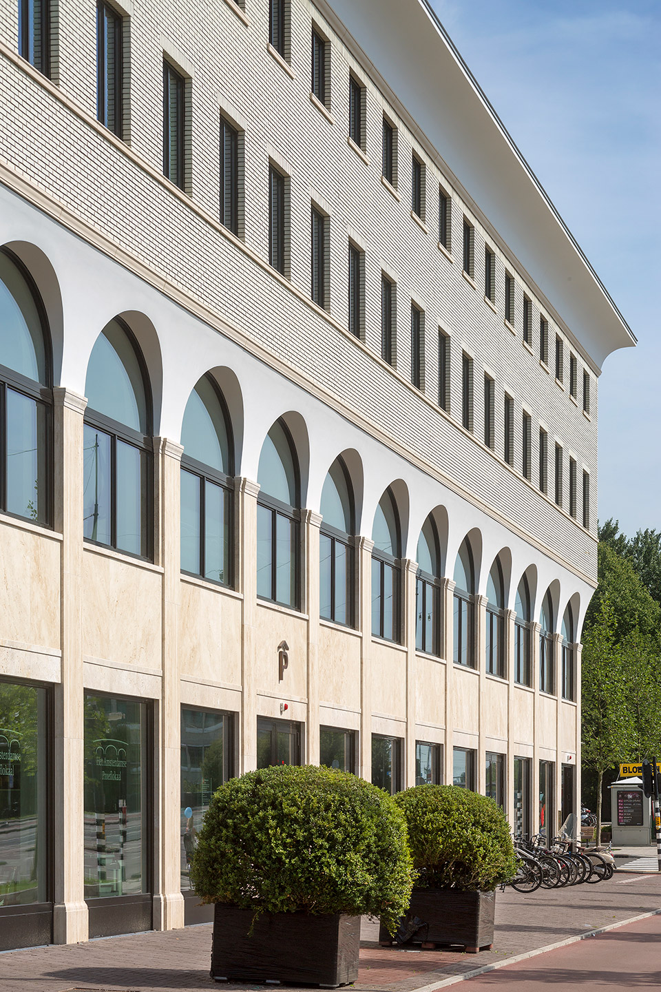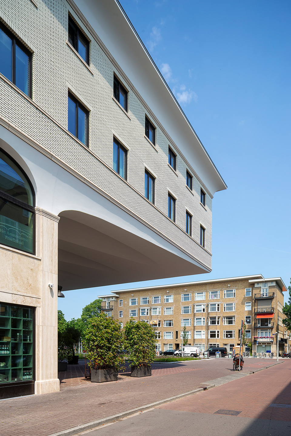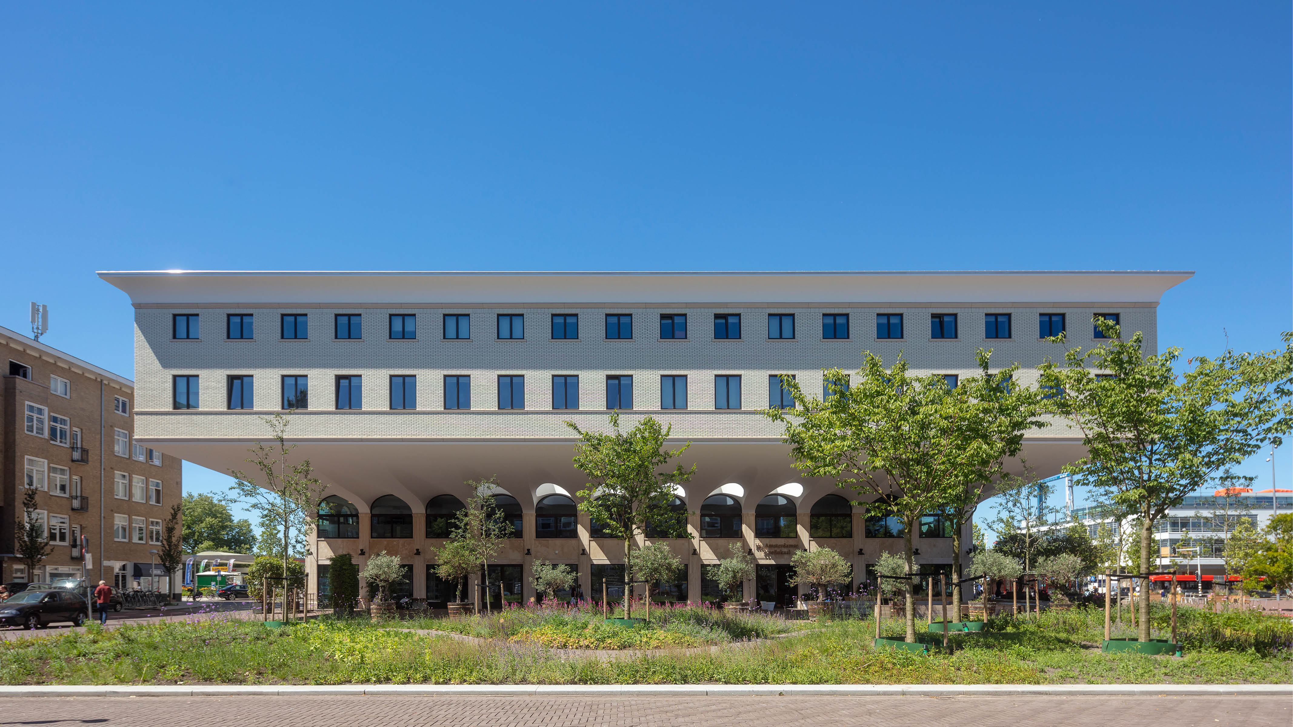 The ‘Zuidblok’ is an omnidirectional building, which activates and enriches its environment. The square located between to the former Olympic stadium and the residential blocks of Berlage’s Plan South (Plan Zuid) had been functioning as a parking lot. With the new building an attractive square is created where not the car but the stroller takes a central role. Part of the masterplan made by OMA/Rem Koolhaas a building envelope was prescribed containing a large cantilever to guaranty free sight over the square for it’s surrounding residents. As a challenge we set out to integrate the cantilever into the buildings’ tectonics, making it’s weight dissipate into the volume and creating a pleasant public space under the canopy.